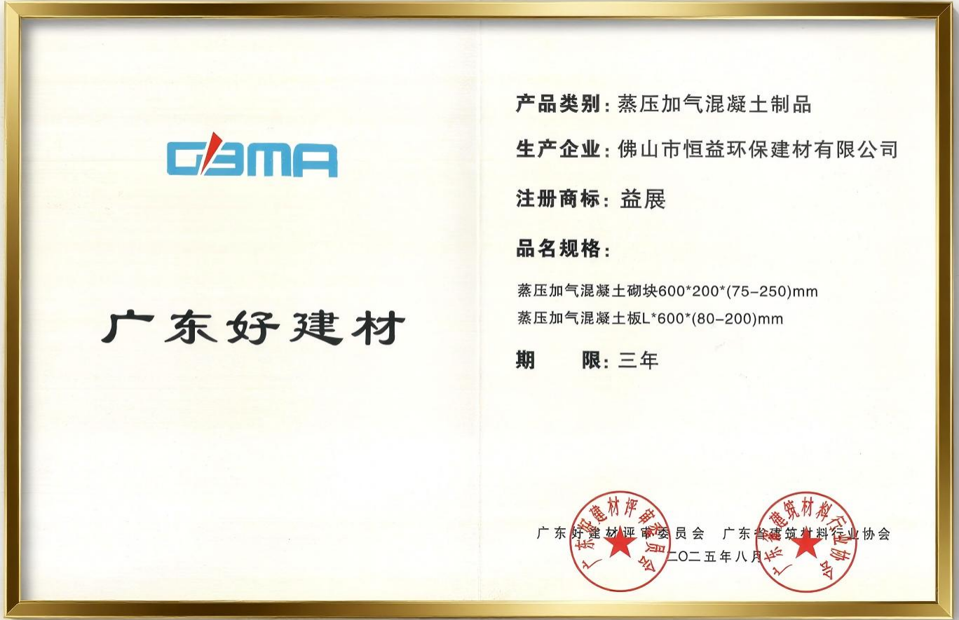8月8日,由广东省建筑材料行业协会主办的“第二届广东建材科技与产业发展大会暨广东省建筑材料行业协会五届三次会员代表大会”在广州空港博览中心隆重举行。会上,Bwin必赢网址下属企业佛山市恒益环保建材有限公司(简称:环保建材公司)的产品--蒸压加气混凝土砌块、蒸压加气混凝土板入选首批“广东好建材”名录。